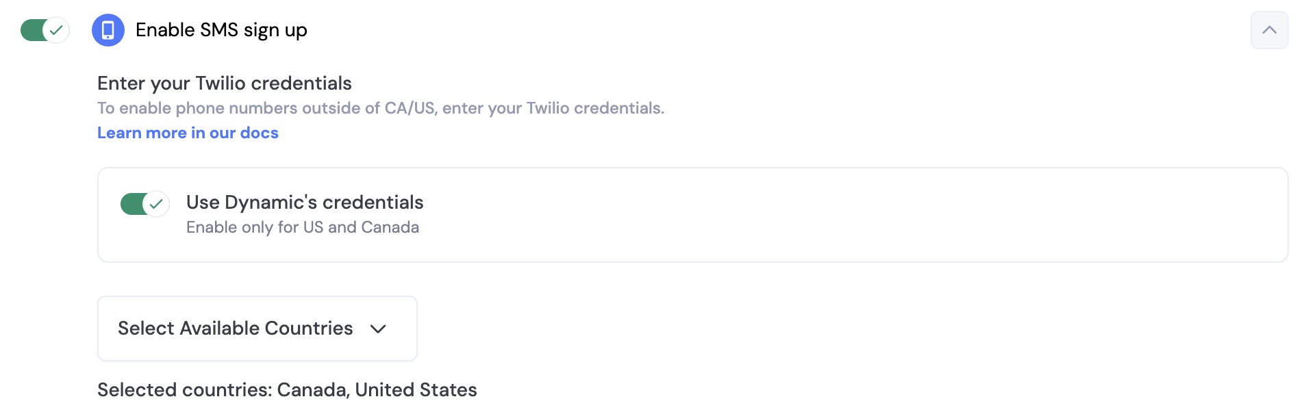 Toggle on “Phone Number” in the Log in & User Profile section of the dashboard.SMS Configuration