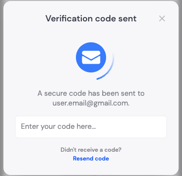 With one-time codes enabled, when the end user attempts to perform an action with their wallet they will be prompted to enter a one-time code sent to their email.